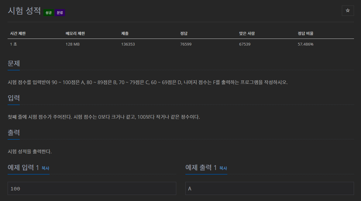 [백준] 9498번 : 시험 성적 (JAVA) 본문