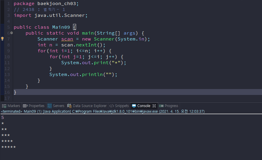 | [백준] 2439번 : 벌 찍기 - 2 (JAVA) (0) | 2021.04.15 |