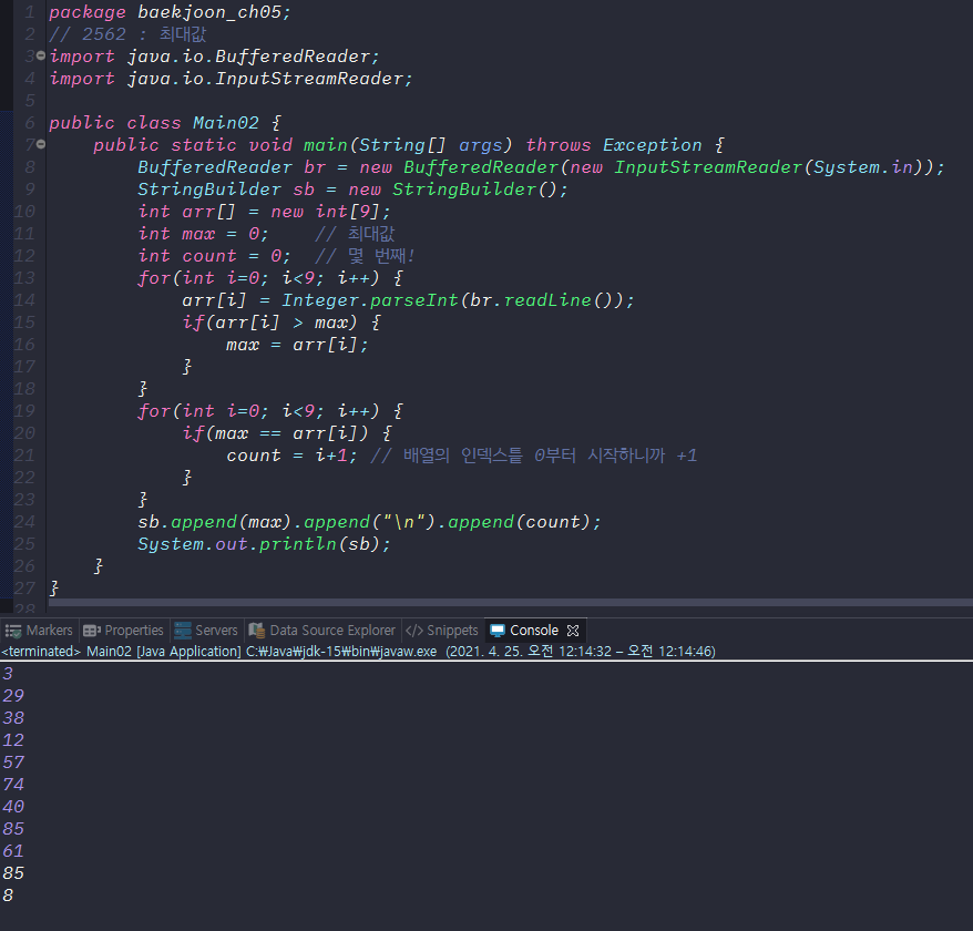 [백준] 2562번 : 최댓값 (JAVA) 본문