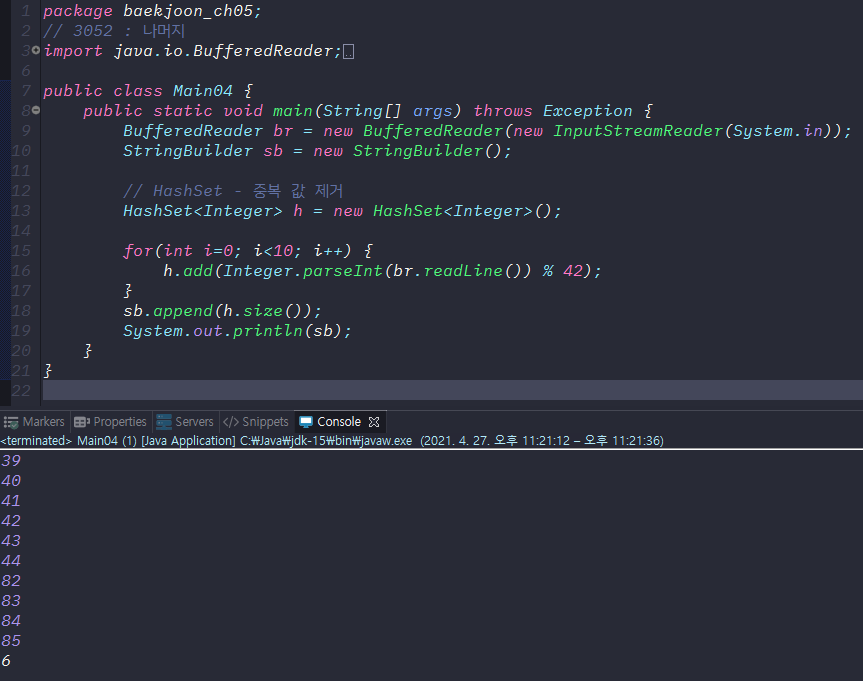 [백준] 3052번 : 나머지 (JAVA) 본문
