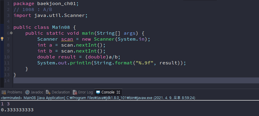[백준] 1008번 : A/B (JAVA) 본문